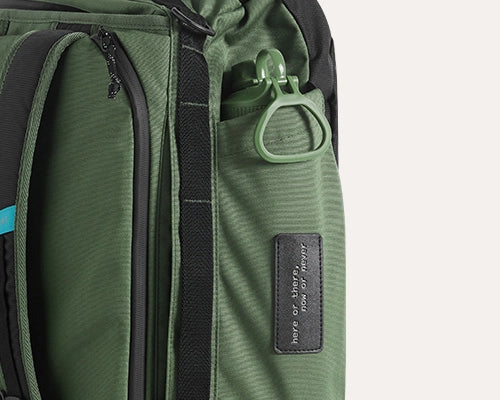 - Two side velcro pockets stow duffle handles neatly when not in use.