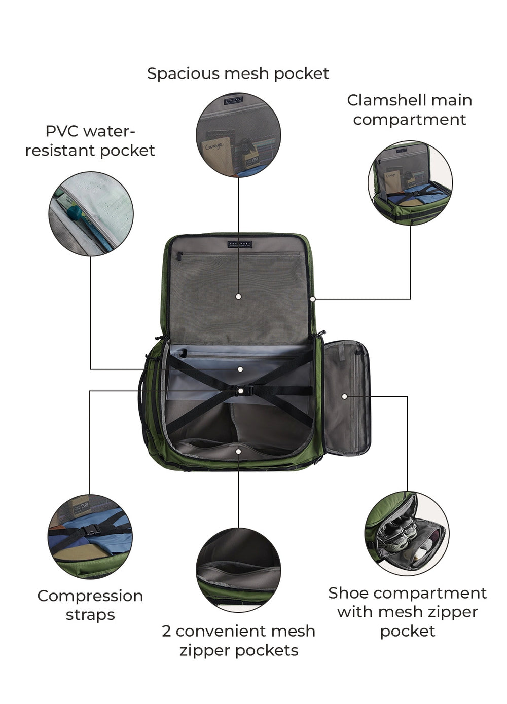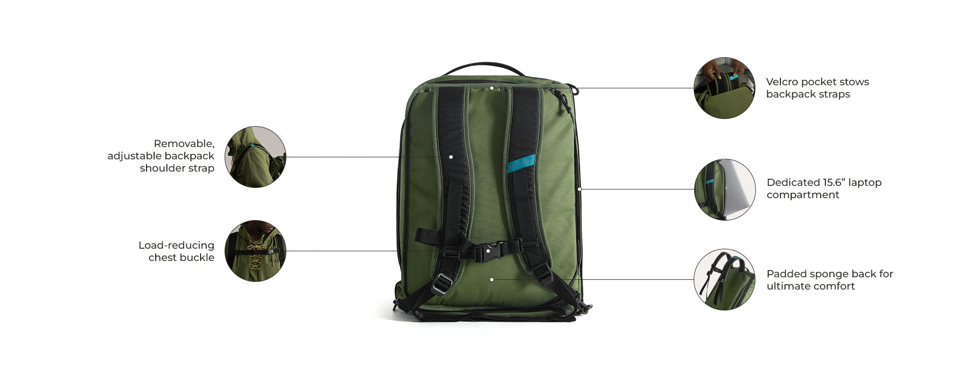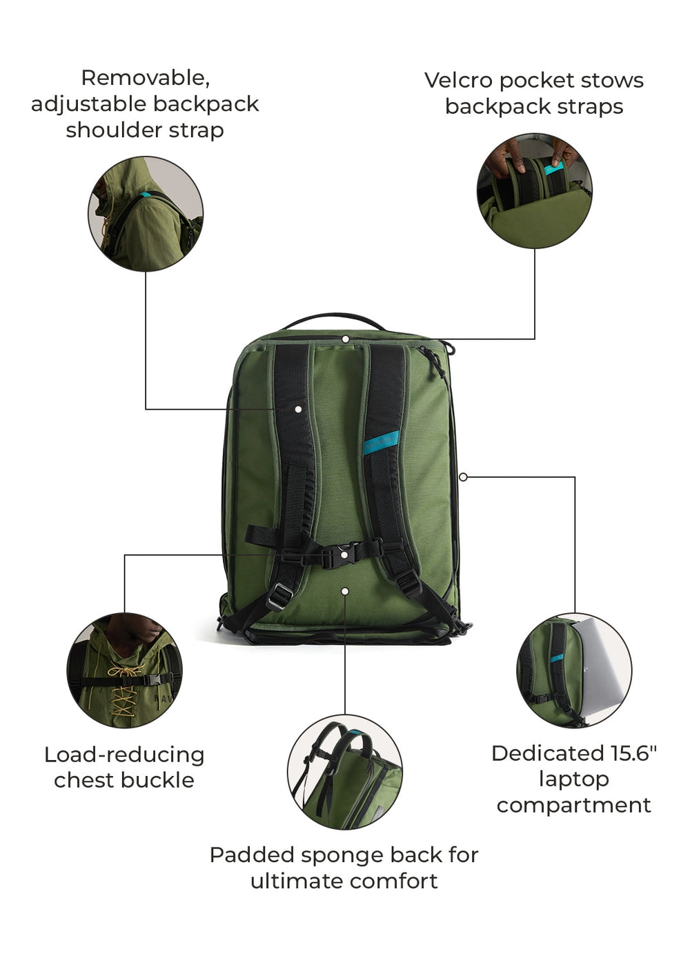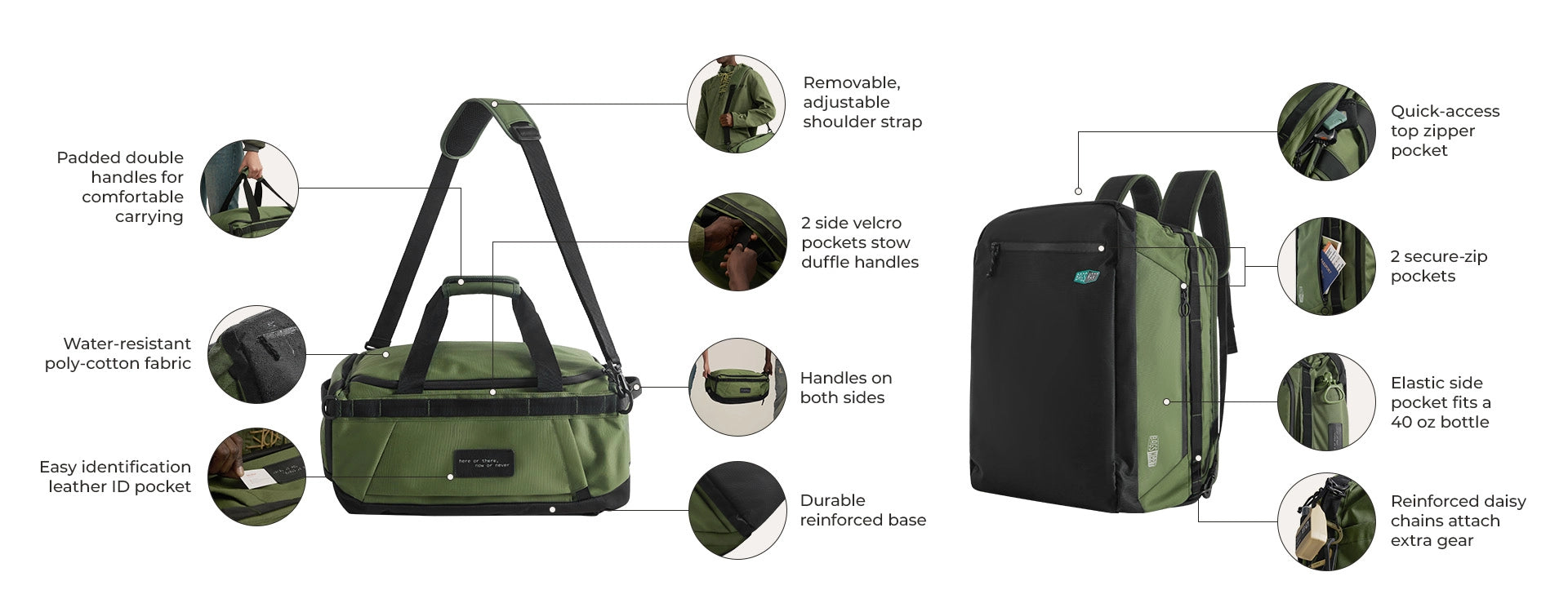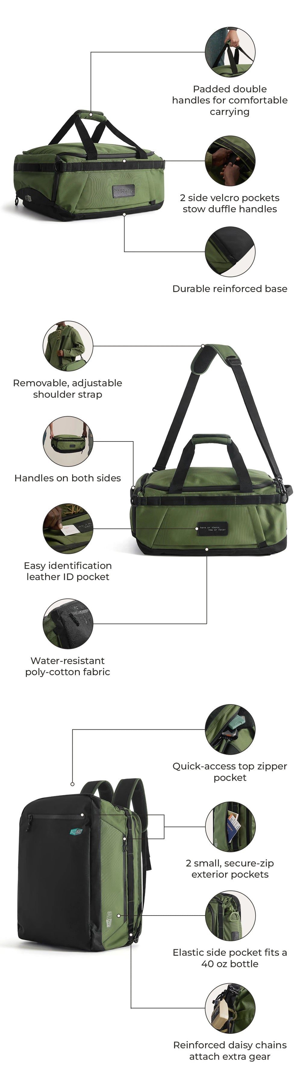 - 3 Carrying Modes: Wear it as a backpack, carry it like a duffle, or sling it over your shoulder.