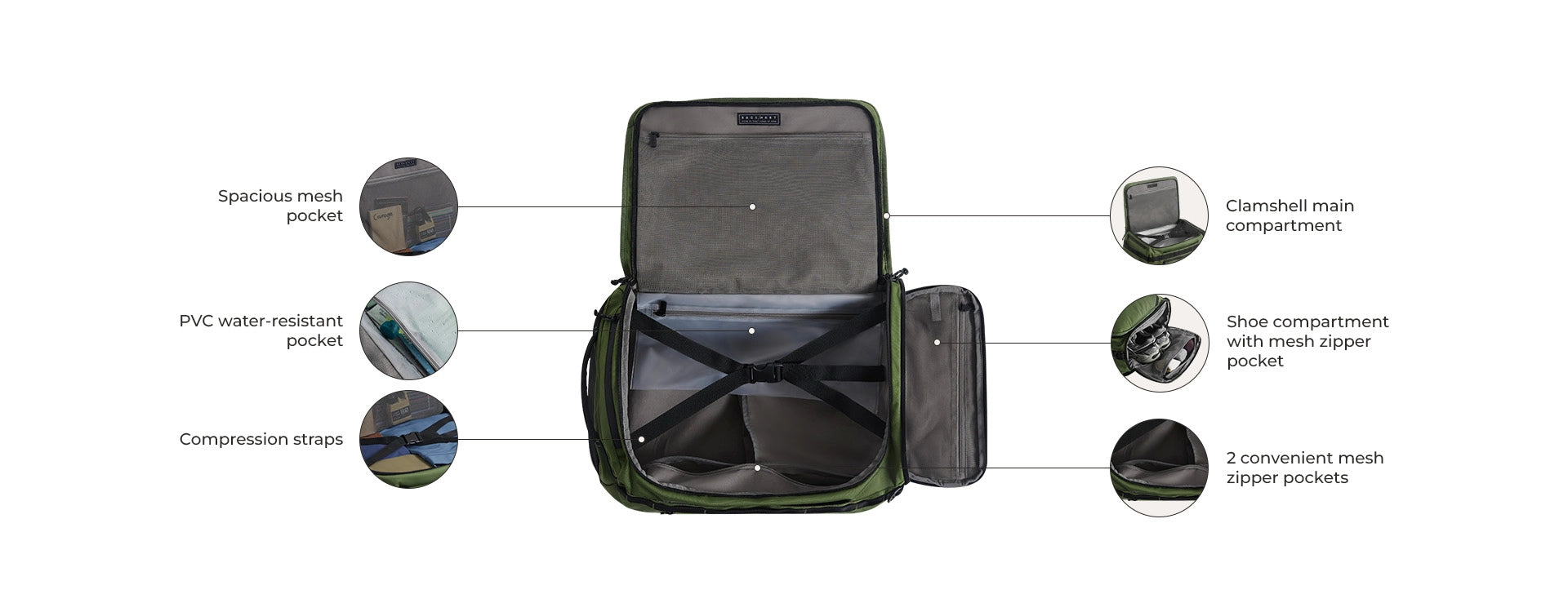 - Compression straps ensure a compact fit, securing your gear for easier travel.