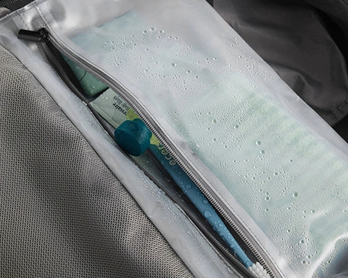 - PVC water-resistant pocket protects wet or leak-prone essentials.