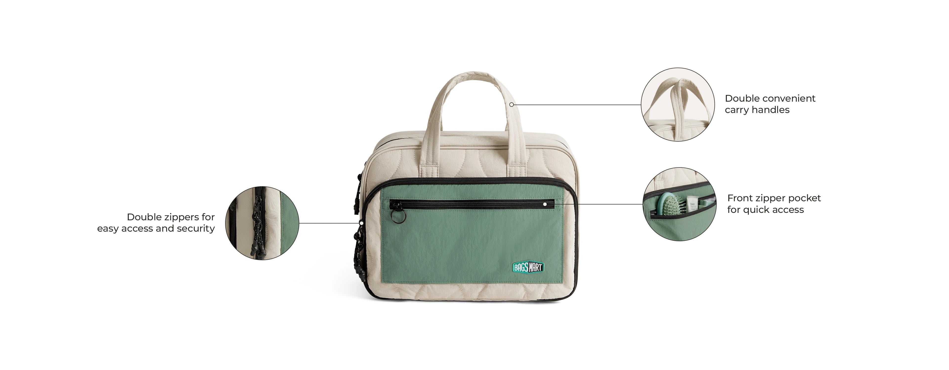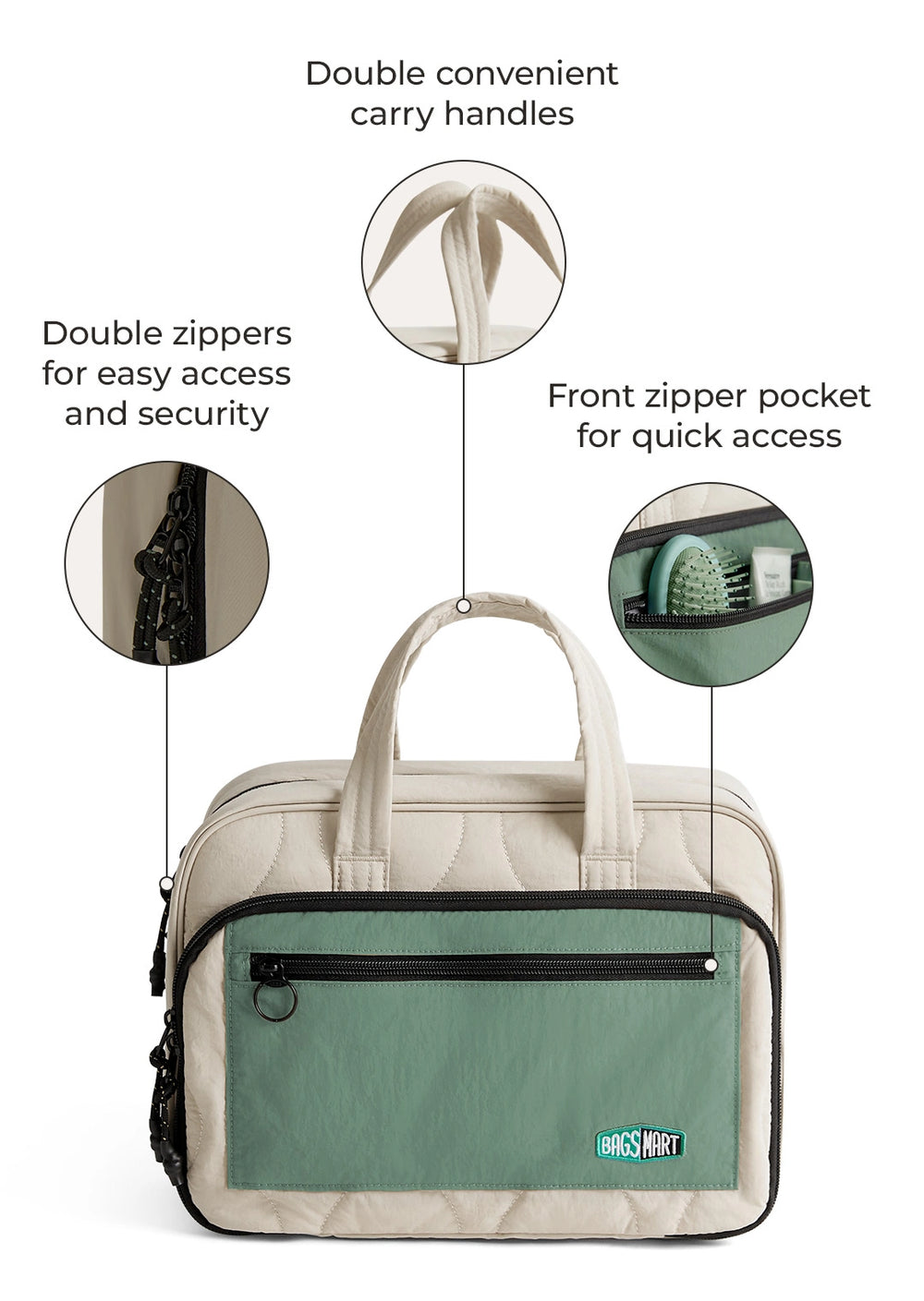 - Paz (Walker) Hanging Toiletry Bag: A spacious, waterproof travel organizer with multiple compartments and a 360° rotating hook, making it easy to access toiletries and keep everything in place.
