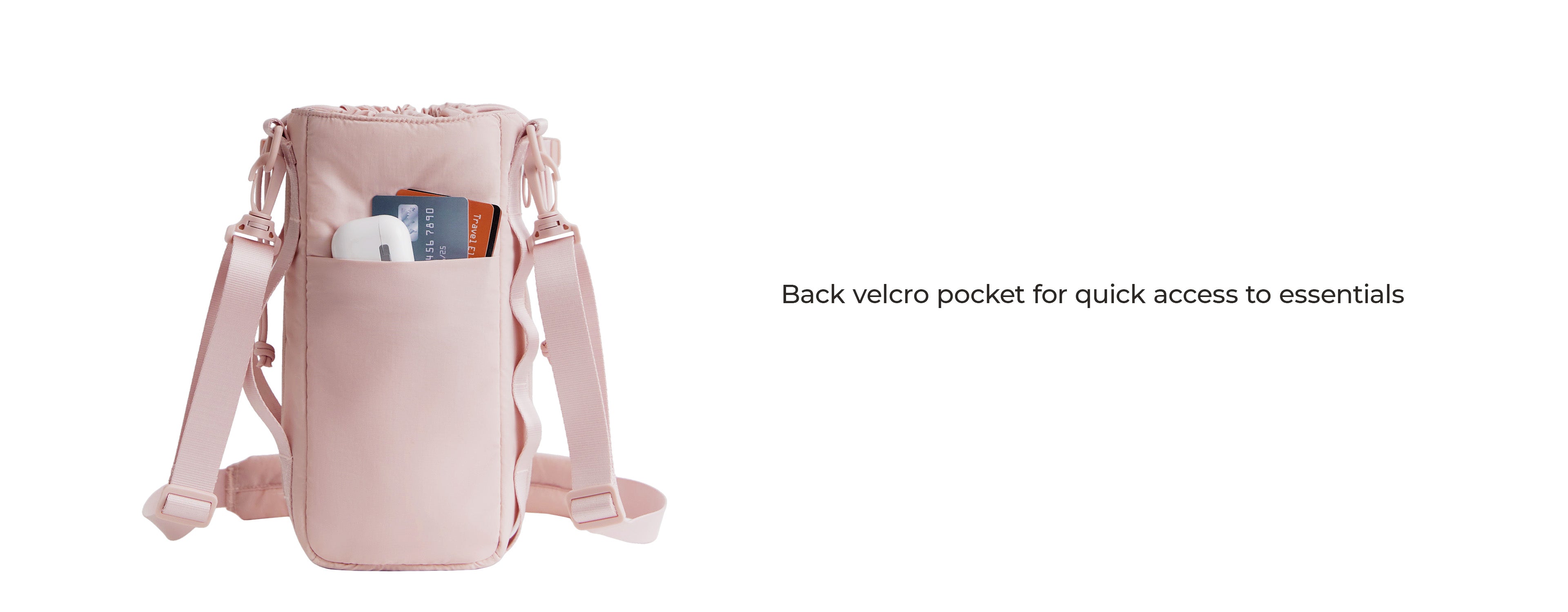 - Front zipper pocket for phone, keys, and cards.