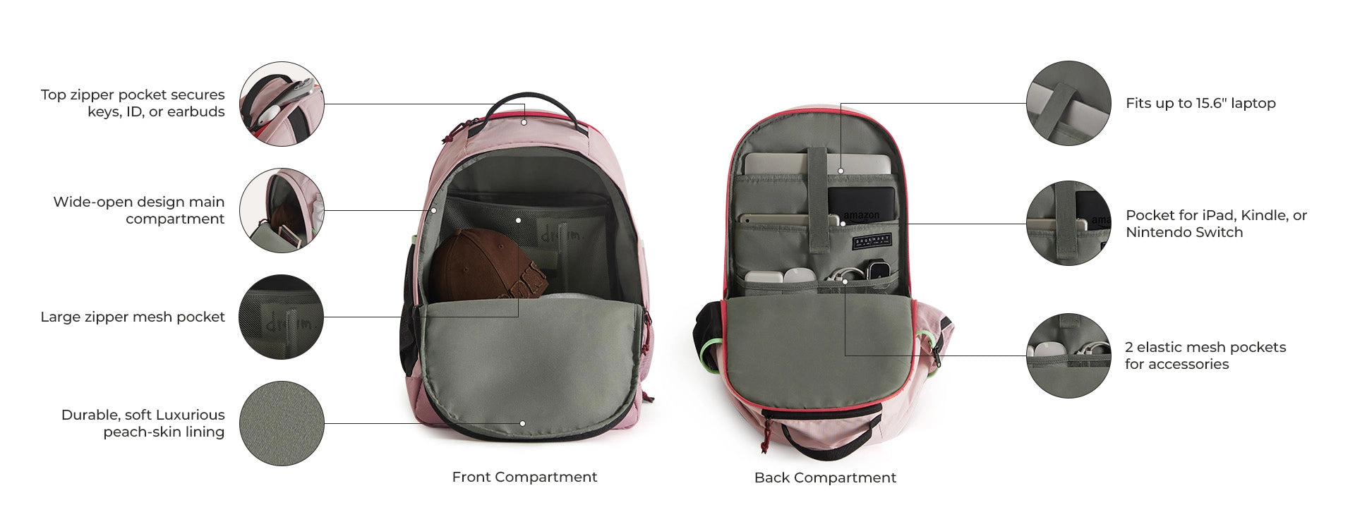 - Padded 15.6" laptop and iPad compartments protect your devices