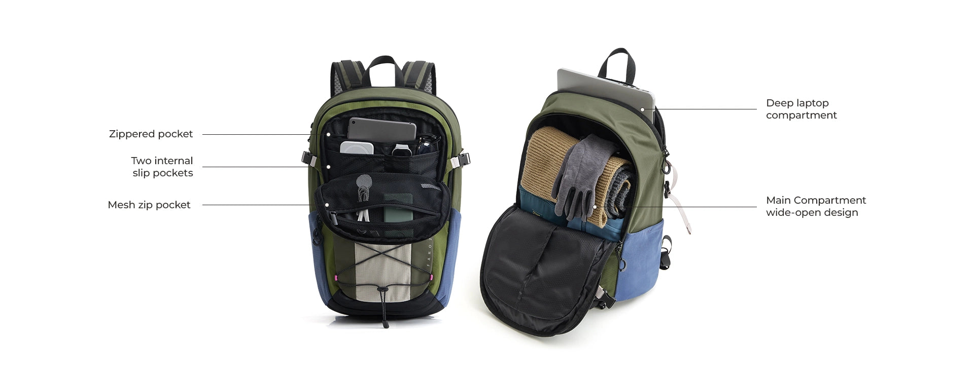 Built for days that move between class, commutes, and quick escapes outside. With a roomy capacity and a separate laptop compartment, it keeps your tech, gear, and daily essentials comfortably in check. Outdoor-inspired details add flexibility without making it feel overly technical. Thoughtful storage—including a dedicated phone pocket—means everything has a place and stays easy to reach. FARO is made for people who want one backpack that works wherever the day goes.