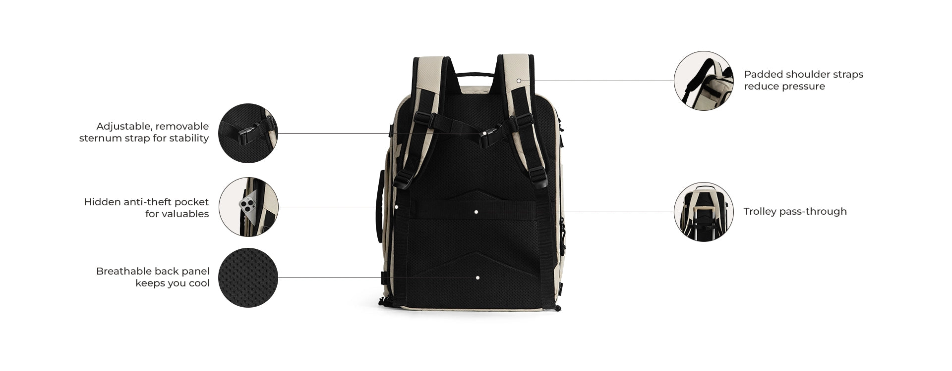 - Carry-on approved, expandable 28¨C38L for 3¨C5 day trips.